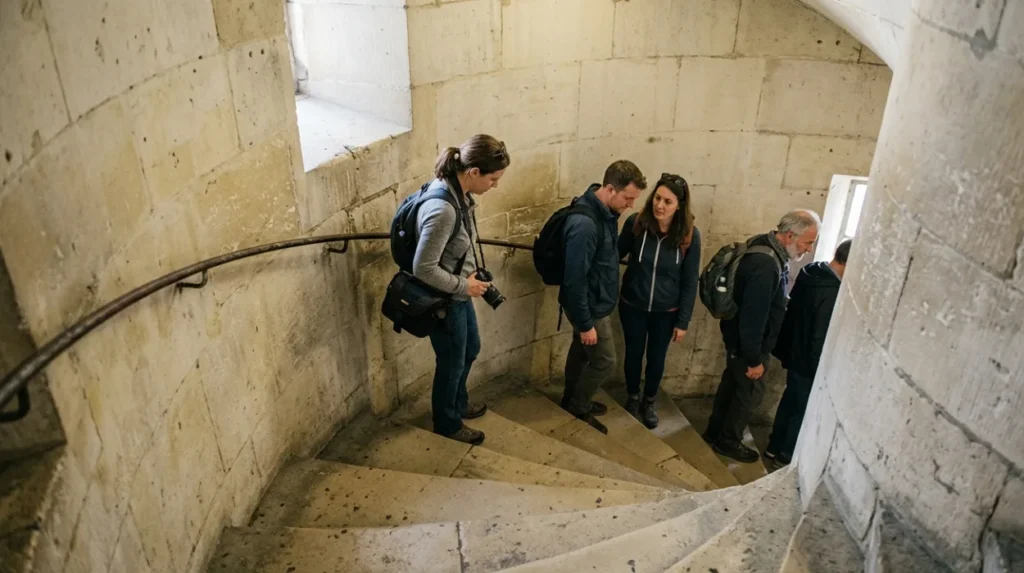 Climbing the dome requires 528 steps from the nave floor to the Golden Gallery, split into Whispering Gallery (257 steps), Stone Gallery (119 more), and Golden Gallery (152 final). Narrow spirals demand fitness; no lifts.