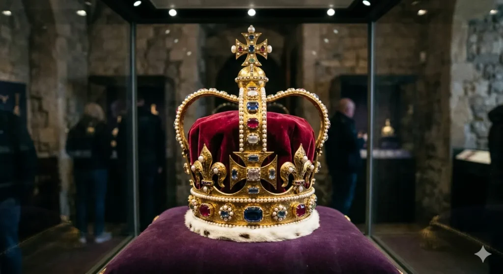 The Crown Jewels comprise the regalia used in British coronations, including crowns, scepters, orbs, rings, and spurs, stored in the Jewel House at the Tower of London, with key items like St Edward’s Crown (1661, weighs 2.2 kg, 444 gemstones) and Imperial State Crown (81 gemstones including Cullinan II diamond at 317 carats), valued over £5 billion in 2026 estimates.